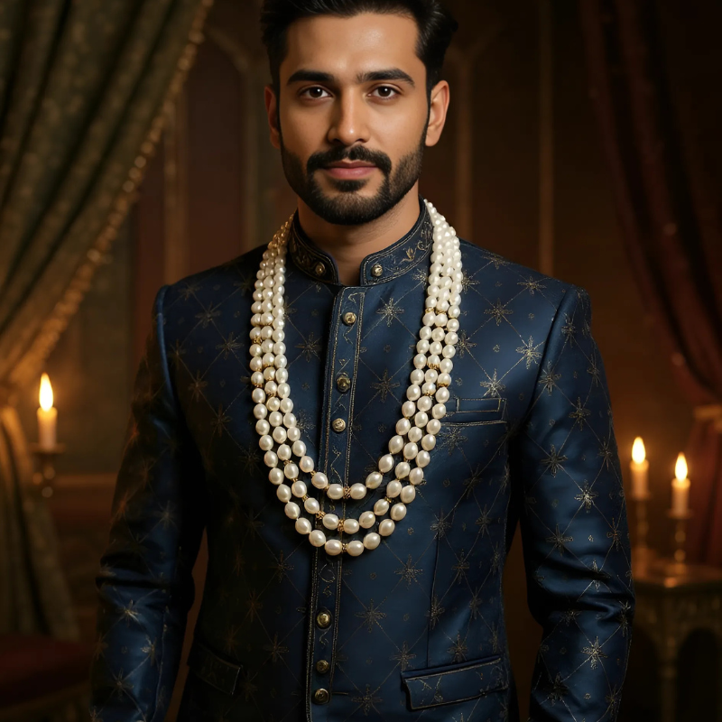 This piece is perfect for festive dressing, cultural ceremonies, or timeless gifting. The triple strand enhances its visual presence while remaining refined and graceful. Whether styled with traditional silks or modern pastel sets, the design carries an aura of quiet celebration and enduring charm.