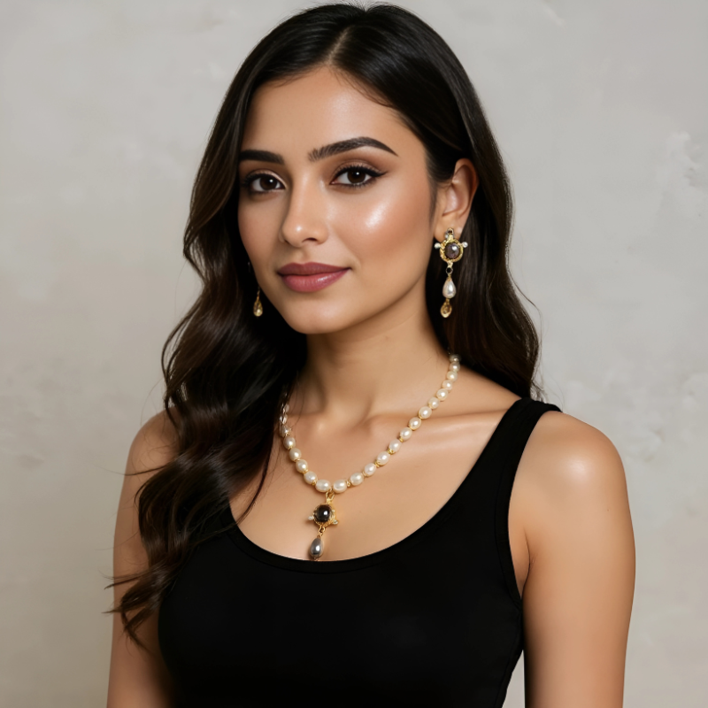 Mukta brings you this pendant set as a reminder that colours can be calm, and jewellery can carry both peace and power in the same breath.