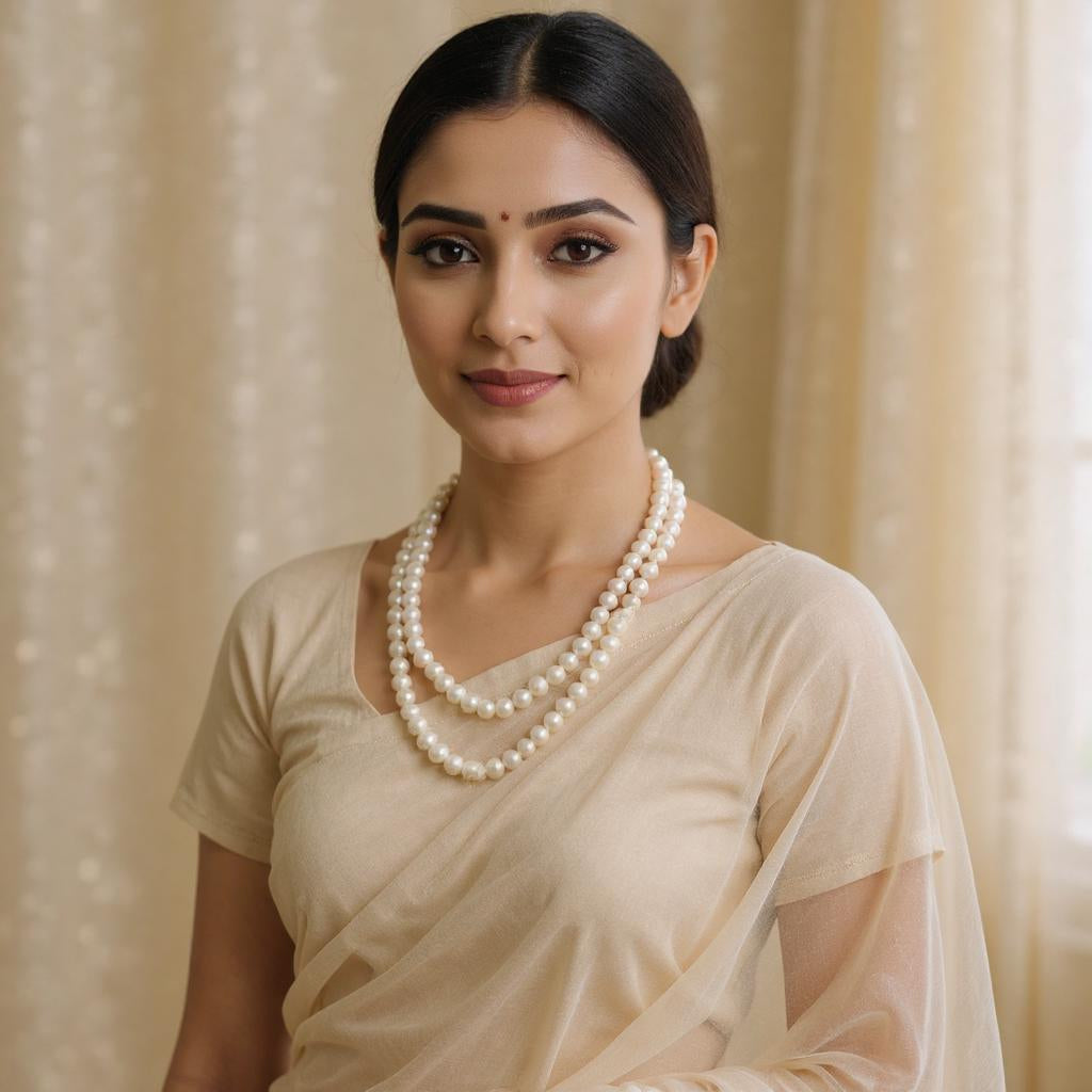 Designed for spiritual routines, intimate rituals, or as a heartfelt gift, this piece offers timeless wearability. It pairs effortlessly with cotton sarees, simple silks, or even solid-tone kurtas. The round pearl silhouette reflects quiet tradition and graceful presence.