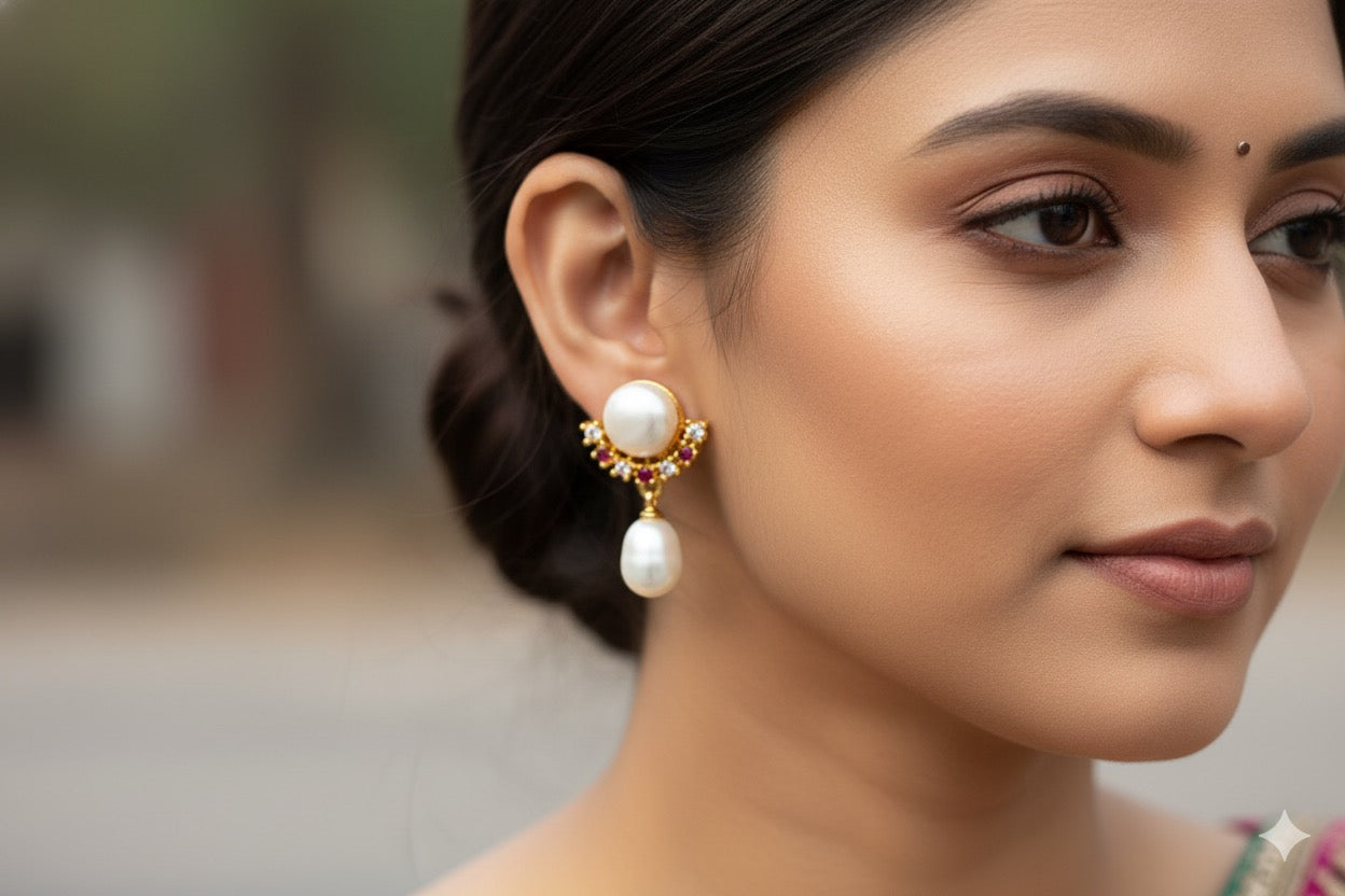 | Pearls | Genuine Freshwater Pearls (one stud, one drop) known for their lustrous sheen and unique organic shape. |