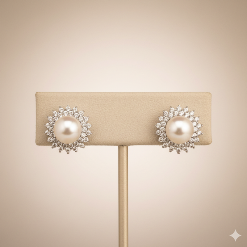 Add a celestial charm to your jewelry collection with our Silver Halo Tops, delicately crafted to embody timeless beauty. At the heart of each earring lies a lustrous freshwater pearl, gracefully encircled by a brilliant halo of high-grade zircon stones — forming a radiant sunburst-like design.