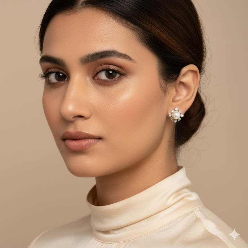The intricate floral-like design makes these earrings a versatile addition to your collection — striking enough for festive occasions yet refined for daily elegance. The soft shimmer of the pearl, paired with the sparkle of finely set zircons, brings a graceful balance to both traditional and modern outfits.